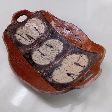 Een oven eromheen en terplekke met hout gestookt tot keramiek.